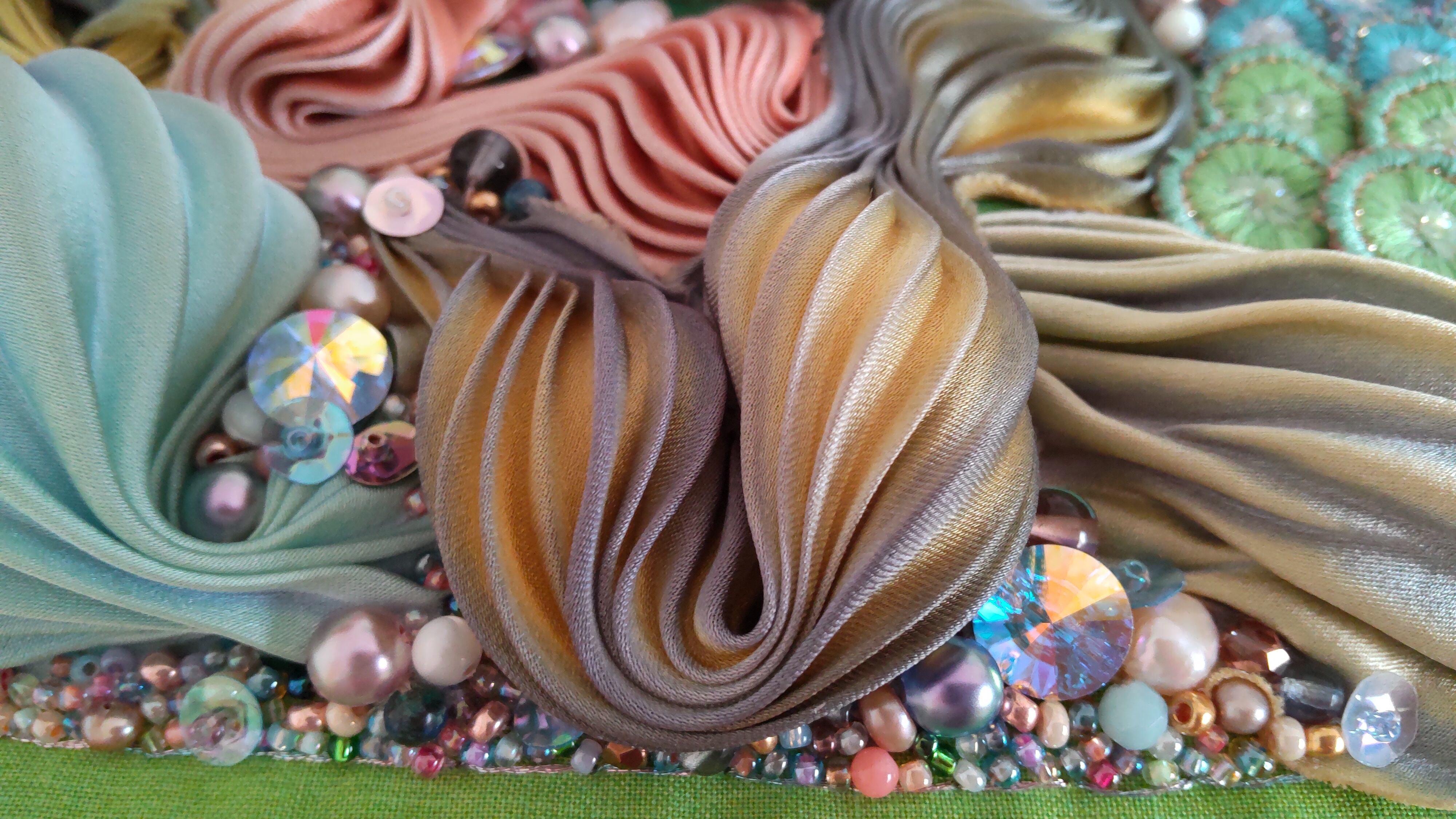 装飾部:シルク絞りリボン、ビーズ、スパンコール、糸